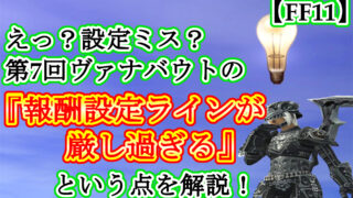 ゲーム 【FF11】えっ?設定ミス?第7回ヴァナバウトの『報酬設定ラインが厳し過ぎる』という点を解説! オンラインゲームのFF11にて、2025年11月18日(火)から開催中の期間限定イベント!第7回『ヴァナ・バウト』の報酬設定ラインがちょっと厳しすぎない…?という疑問点を解説する記事です。 2025.11.19 ゲーム