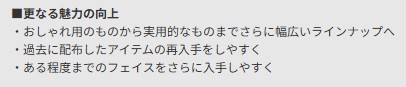 お洒落装備や変身アイテムなど…