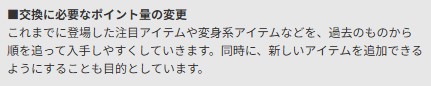 ポイント量と仕様の変更により、